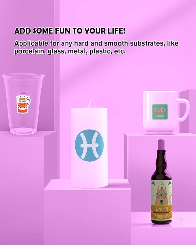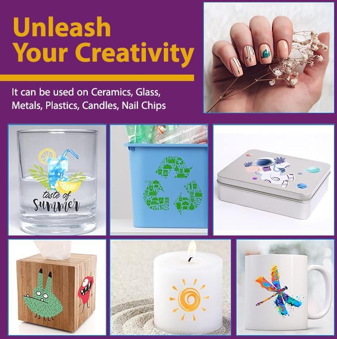 - VERSATILE APPLICATIONS: Print, cut, and transfer your designs onto various surfaces such as mugs, tumblers, plates, candles, nail-art chips, vases, water bottles, and more.