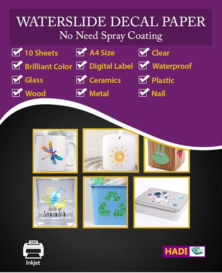 - PREMIUM QUALITY: Experience unparalleled quality! Our waterslide decal paper offers outstanding ink absorption No Need Spray Coating and supports resolutions up to 5760 dpi, ensuring brilliant, fade-proof colors.