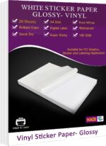 - Premium Glossy Finish: Our A4 Pure White Glossy Printable Vinyl Sticker paper 20 sheets are specially designed to provide exceptional print results. Unlike paper-based labels, stickers last longer, and anti-jamming features. Tear-Resistant