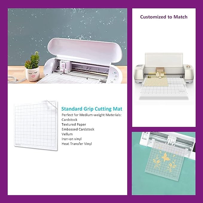 - HIGH QUALITY – No slip. suitable for cardstock pattern paper, washi paper, self-adhesive iron-on/HTV MULTIPURPOSE – Including the light, standard, strong grip which is great for cardstock, iron-on, vinyl, washi and window cling material. The purple cutting mat has a strong grip ideal for thick cardstock. glitter cardstock