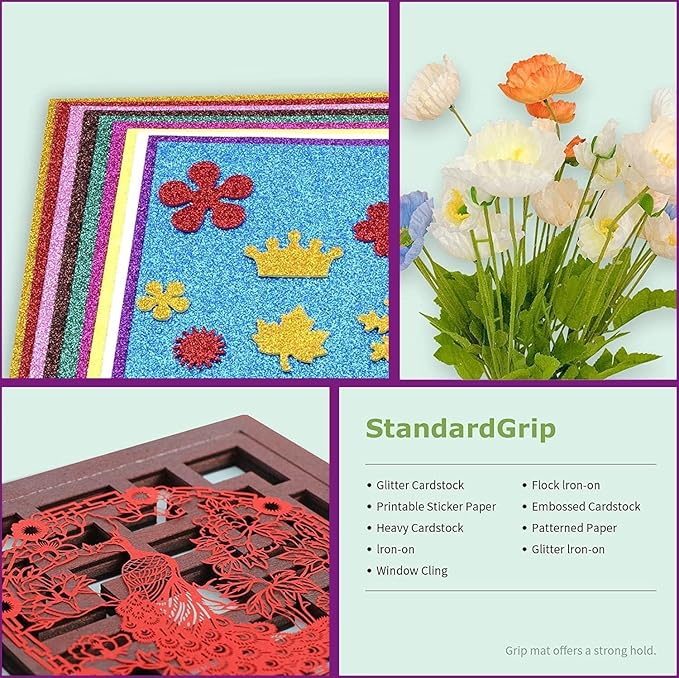 - The light grip is perfect for cardstock, iron-on, vinyl, washi, and window cling material. The standard grip is great for cardstock, iron-on, vinyl, and glitter cardstock. And the strong grip is ideal for thick cardstock.