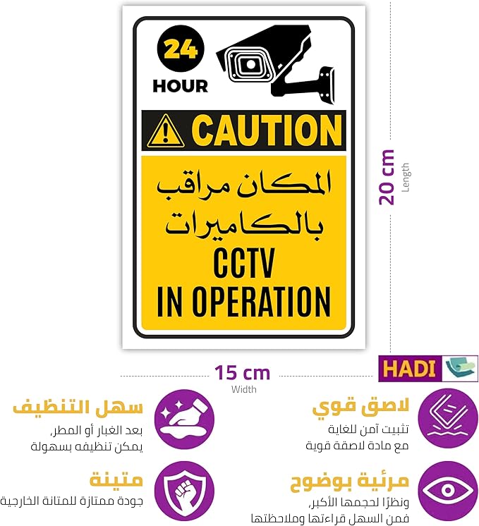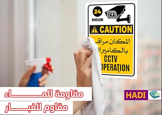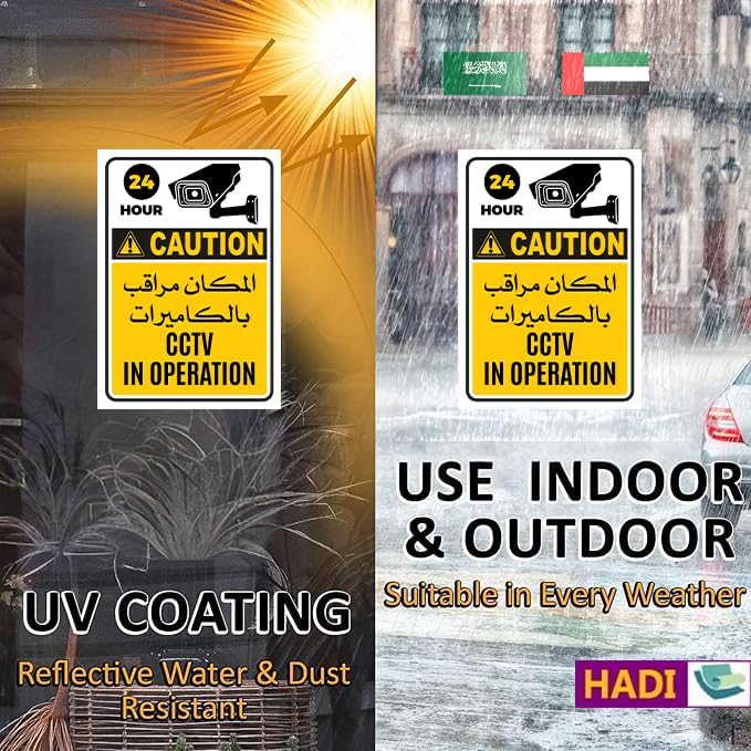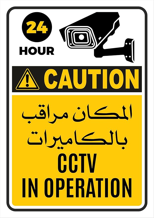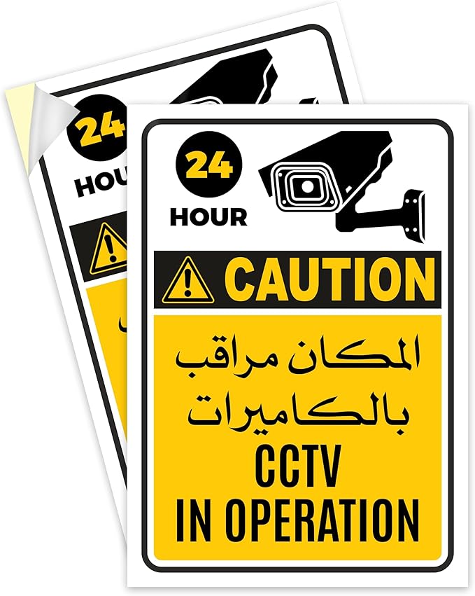 • “CCTV In Operation Sign Stickers” (2 Pack) Arabic & English -Laminated Office Warehouse Business Sign