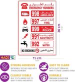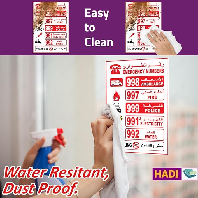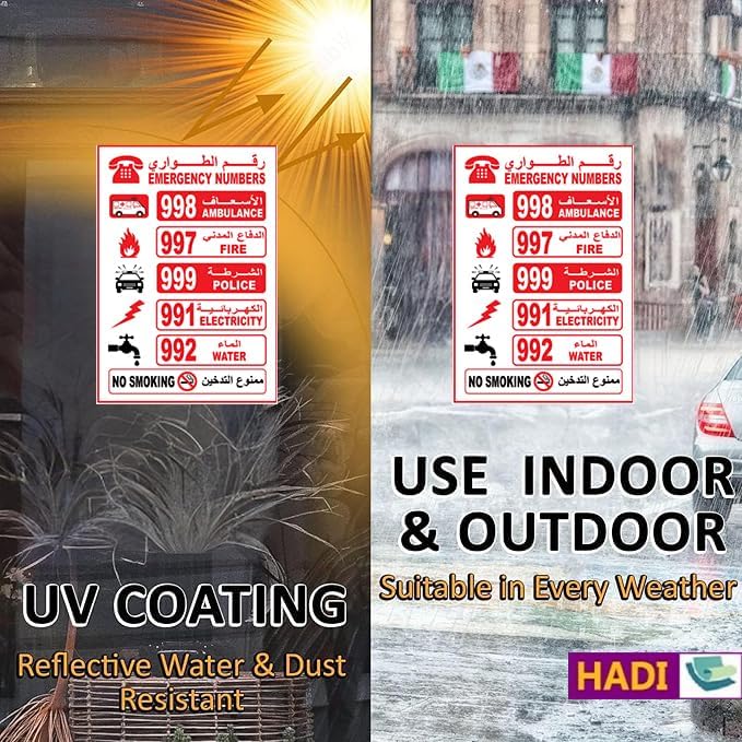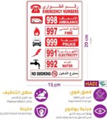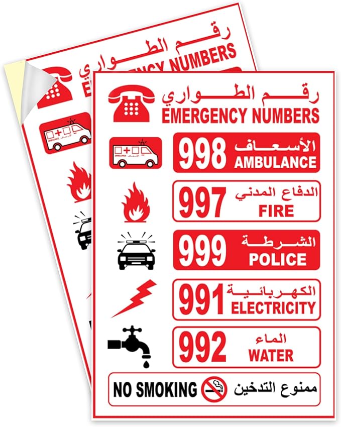 - Displays essential emergency numbers: Ambulance, Fire, Police, Electricity, Water, No Smoking.For long-term use without change colors .