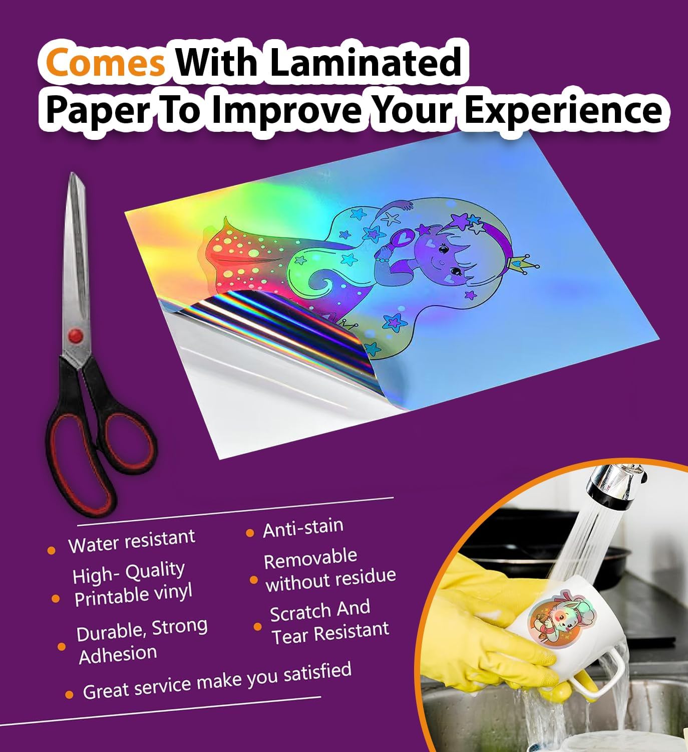 - Premium Holographic Glossy Finish: Our A4 Pure Glossy Printable Vinyl Sticker paper 20 sheets are specially designed to provide exceptional print results. Unlike paper-based labels, stickers last longer, and anti-jamming features. Tear-Resistant