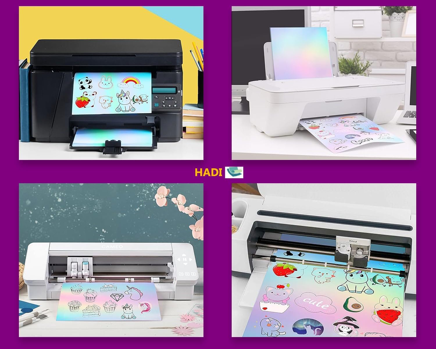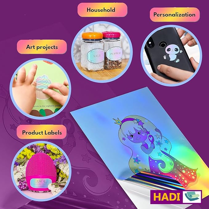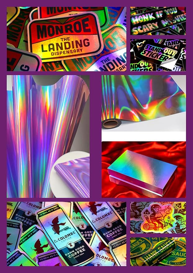 - Versatile in Functionality: Our printable Glossy Vinyl Sticker Holographic serves a myriad of applications. Ideal for compatibility with Cricut and Silhouette machines, crafting marketing materials, crafting bumper stickers, labeling cups and jars, creating notepads and notebooks, designing planner labels, generating shipping or postage labels, fueling art and craft endeavors, crafting posters, customizing decals, and producing name tags, among other possibilities.